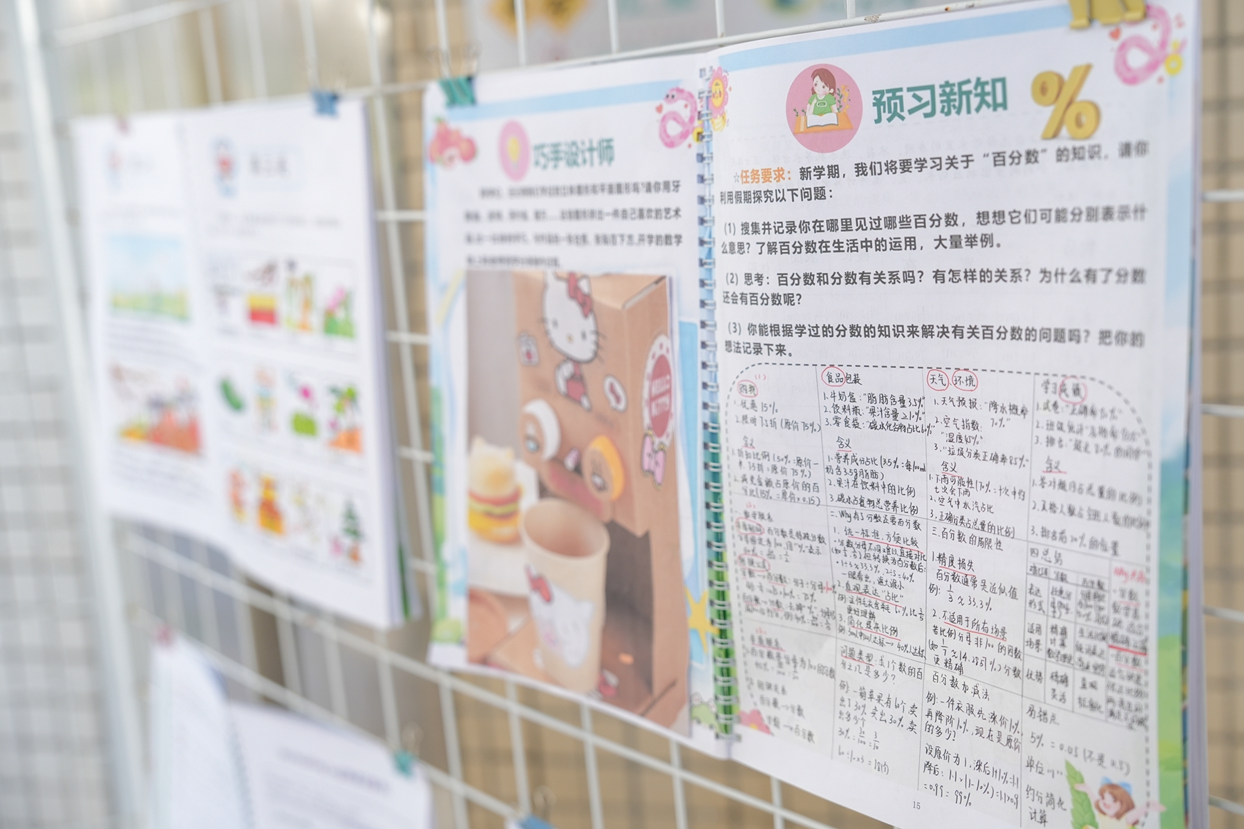 五年級展區(qū)亮點紛呈。語文方面,旅游小報設計獨具匠心,圖文并茂展現(xiàn)各地風土人情;硬筆書法作品盡顯漢字韻味;讀書筆記條理清晰、感悟真摯。數(shù)學展區(qū)中,牙簽橋模型巧妙運用三角形穩(wěn)定性原理;抗戰(zhàn)時間軸項目讓學生在實踐中深化歷史認知與數(shù)學邏輯。英語繪本創(chuàng)作充滿童趣,提升了語言運用能力。