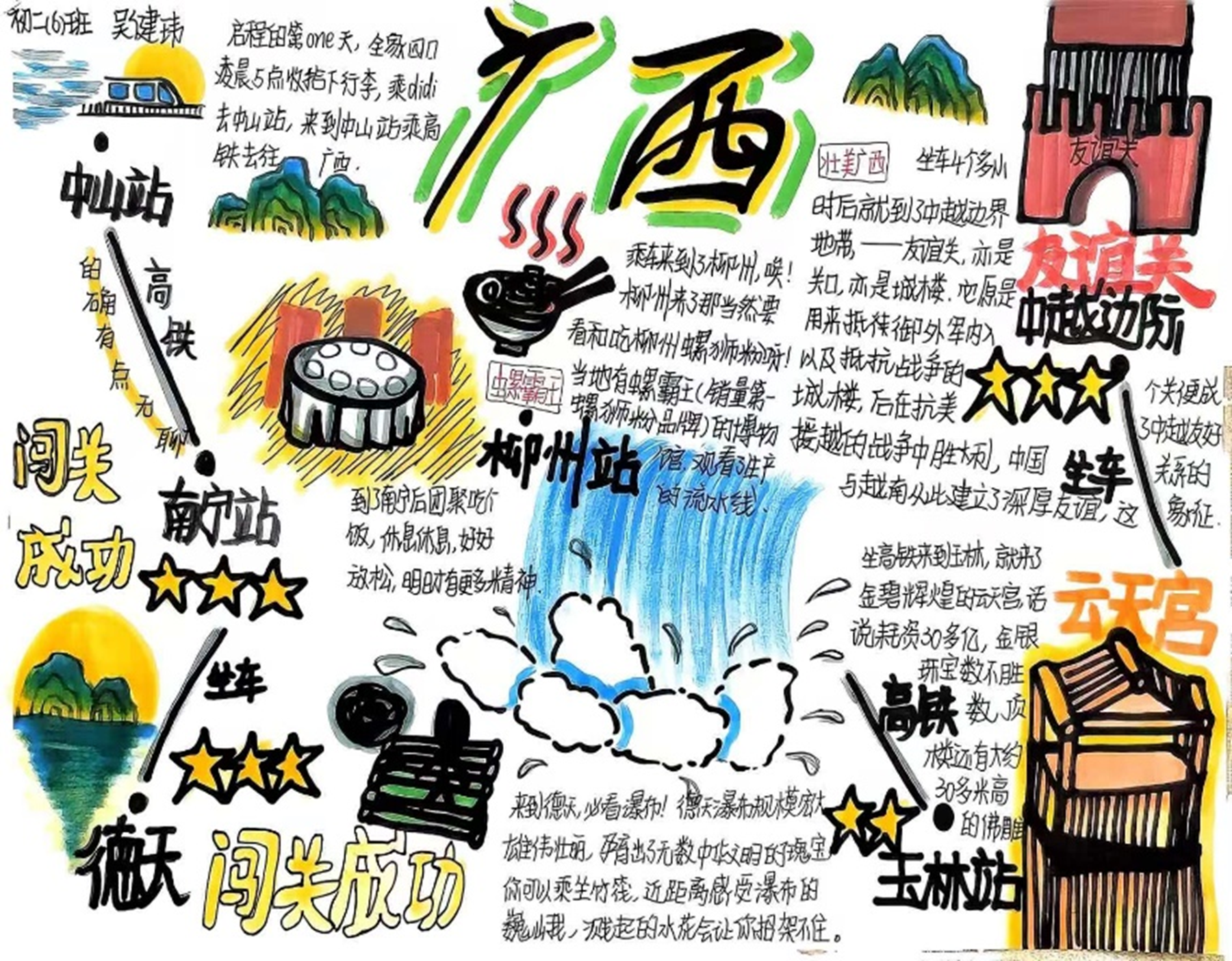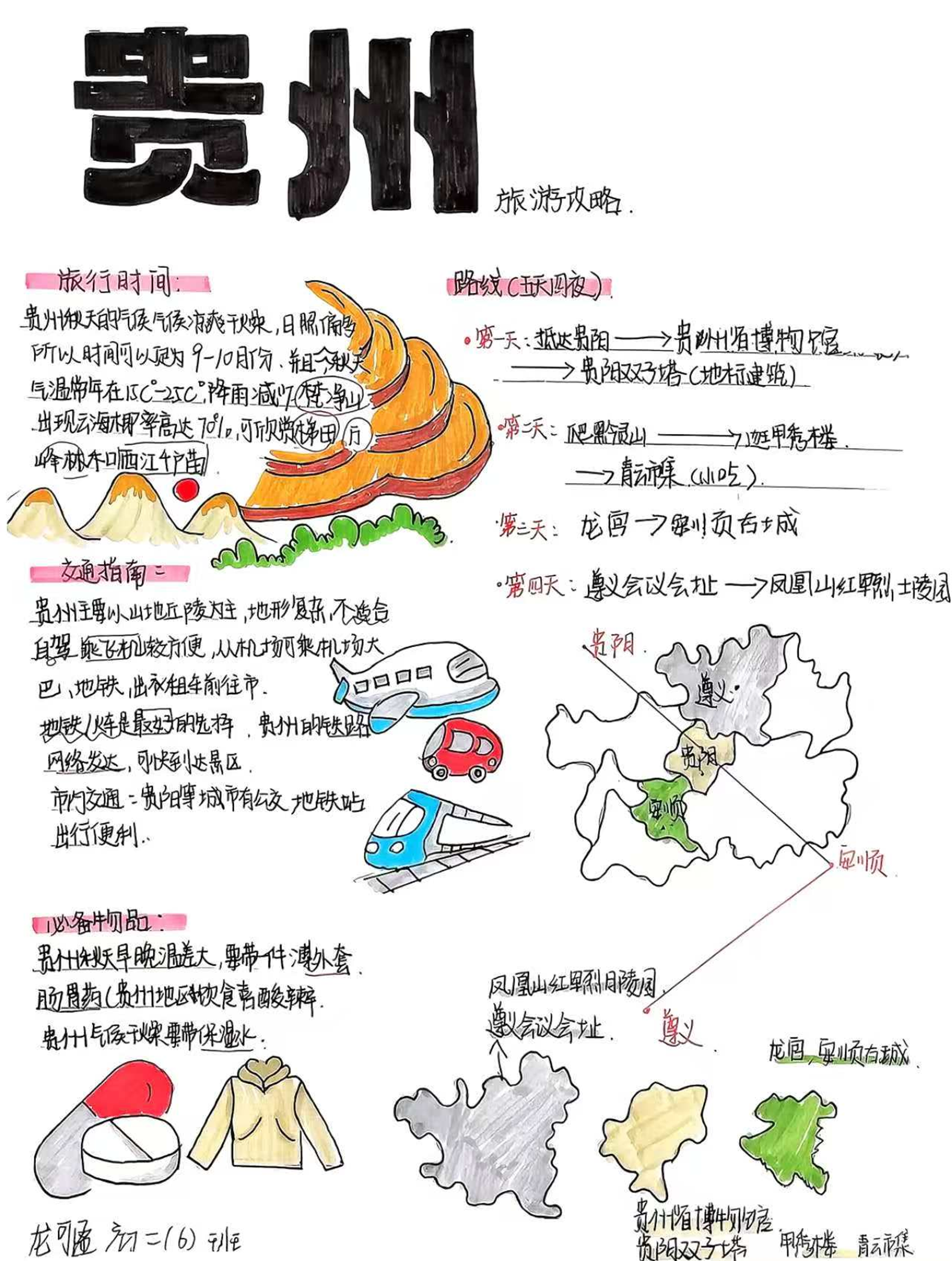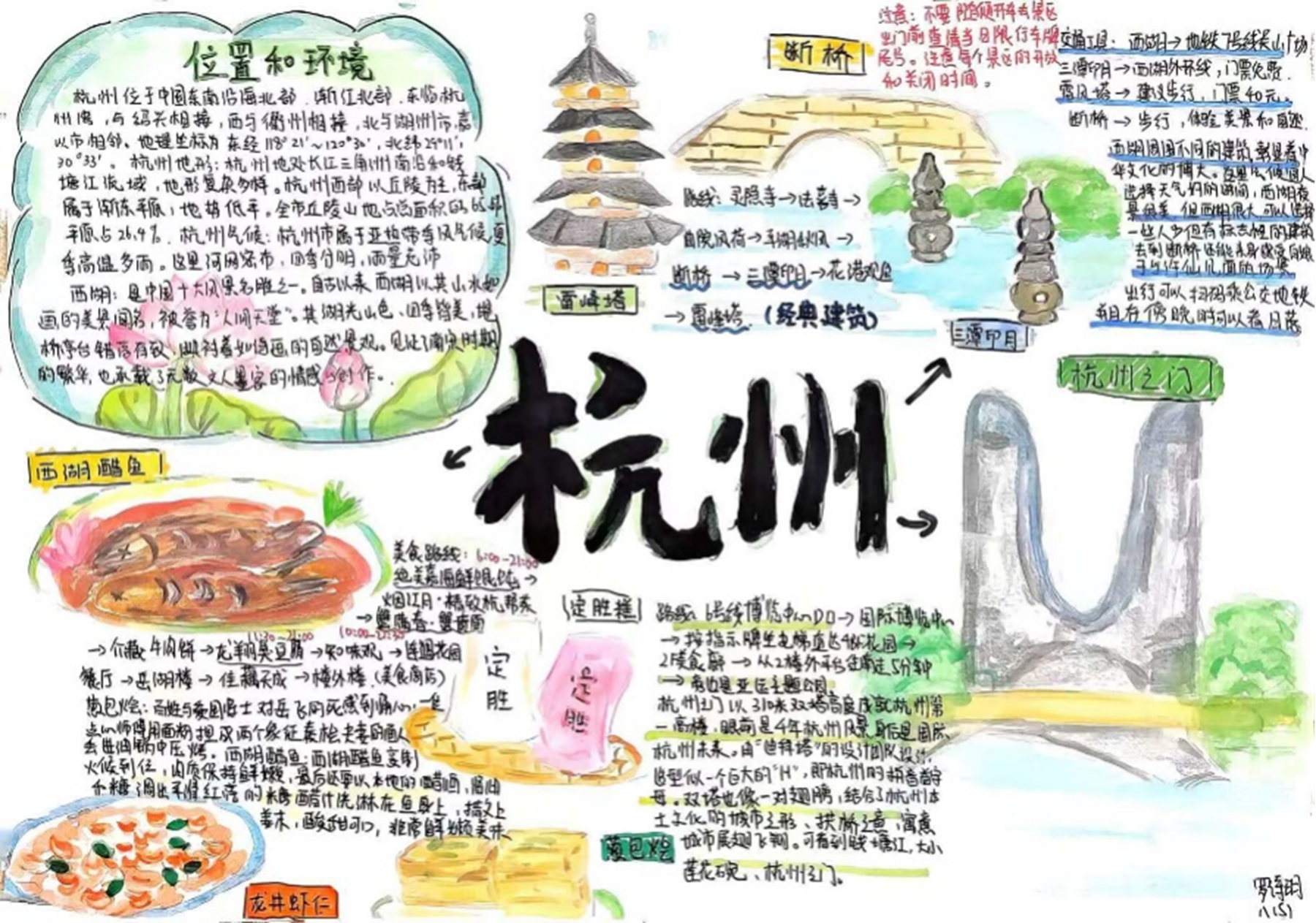 同學(xué)們以“地理人視角”制作圖文并茂的旅游攻略與路線(xiàn)圖,不僅打破傳統(tǒng)書(shū)面作業(yè)模式,將地理知識(shí)與生活實(shí)踐深度結(jié)合,讓暑假學(xué)習(xí)從“紙上談兵”變?yōu)椤俺两襟w驗(yàn)”。同學(xué)們運(yùn)用氣候知識(shí)規(guī)劃行李、結(jié)合距離選擇交通工具、依托地域文化設(shè)計(jì)旅游行程。圖文結(jié)合的模式,讓同學(xué)們?cè)趧?chuàng)作中加深了對(duì)地理知識(shí)的理解與應(yīng)用。